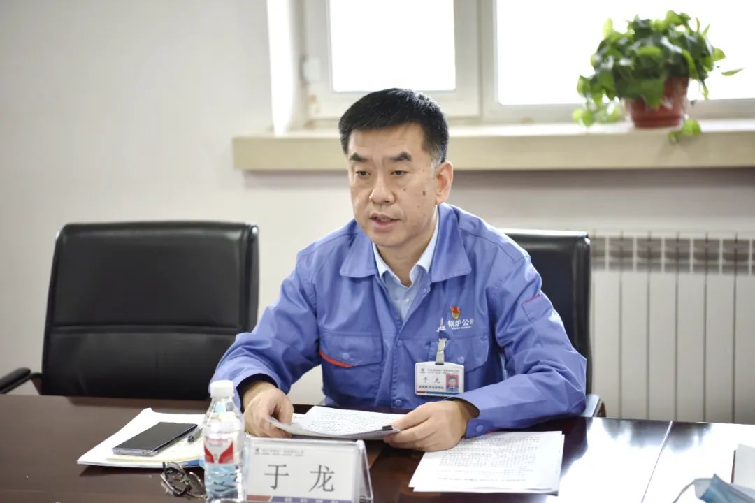 哈電鍋爐黨委副書記、總經理,公司黨史學習教育領導小組組長于龍主持會議,交流學習心得體會并作總結講話。