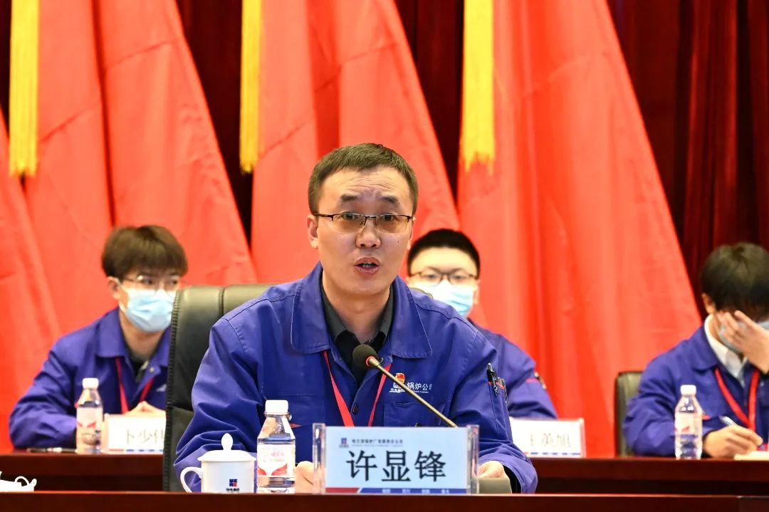 蔣勝彬在講話中首先代表哈電集團團委向大會的勝利召開表示熱烈祝賀,向奮戰(zhàn)在鍋爐公司各條戰(zhàn)線的團員青年致以誠摯問候,向長期以來關(guān)心、支持鍋爐公司共青團工作的各級領(lǐng)導(dǎo)表示衷心感謝。他指出,在全黨全國認真學(xué)習(xí)宣傳貫徹黨的二十大精神之際,鍋爐公司第十七次團代會隆重召開,這是鍋爐公司黨建帶團建的生動實踐,也是鍋爐公司團員青年政治生活中的一件大事。近年來,鍋爐公司堅持以習(xí)近平新時代中國特色社會主義思想為指導(dǎo),認真學(xué)習(xí)貫徹習(xí)近平總書記關(guān)于國有企業(yè)改革發(fā)展的重要論述,完整、準確、全面貫徹新發(fā)展理念,貫徹落實黨中央關(guān)于推進高質(zhì)量發(fā)展的決策部署,為哈電集團改革發(fā)展作出了重要貢獻。在今后的工作中,鍋爐公司兩級團組織要強化青年思想引領(lǐng),培育信念堅定的共產(chǎn)主義者;要強化青年能力提升,鍛造本領(lǐng)過硬的先鋒隊;要強化青年責任擔當,打造艱苦奮斗的生力軍。他表示,希望鍋爐公司兩級團組織和廣大團員青年以建設(shè)世界一流裝備制造企業(yè)目標為引領(lǐng),奮發(fā)有為、銳意進取,在加快推進企業(yè)實現(xiàn)轉(zhuǎn)型升級高質(zhì)量發(fā)展的新征程上再創(chuàng)佳績、再立新功!