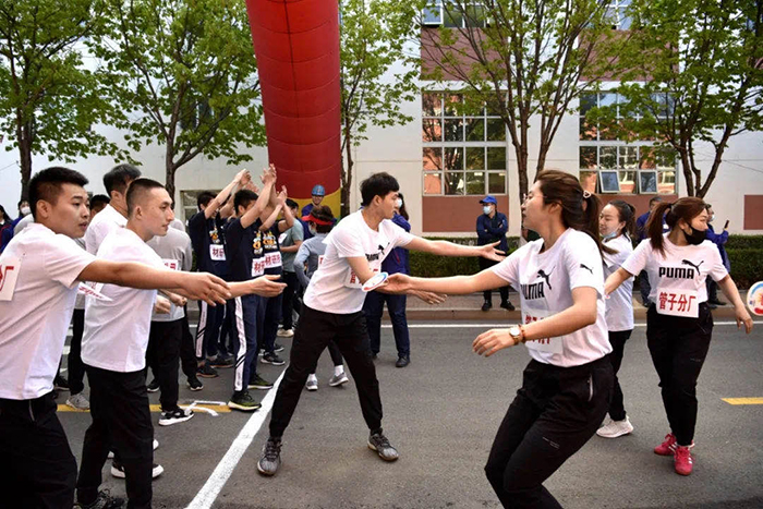 活動(dòng)當(dāng)天,陽光明媚,廠內(nèi)彩球高懸、彩旗飄揚(yáng)。15時(shí)30分,中國(guó)機(jī)械冶金建材職工技術(shù)協(xié)會(huì)執(zhí)行會(huì)長(zhǎng)毛迎春受邀打響發(fā)令槍,公司領(lǐng)導(dǎo)、營(yíng)銷系統(tǒng)、管理系統(tǒng)、生產(chǎn)裝備系統(tǒng)、科技系統(tǒng)、計(jì)財(cái)系統(tǒng)等6支隊(duì)伍身著鮮艷運(yùn)動(dòng)服,精神抖擻、氣宇軒昂地沿比賽路線跑步一圈,為長(zhǎng)跑比賽熱場(chǎng)、助陣。