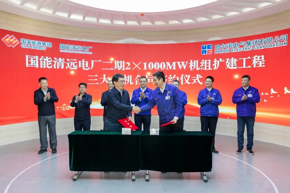 日前,國(guó)能清遠(yuǎn)電廠二期2×1000MW機(jī)組擴(kuò)建工程三大主機(jī)設(shè)備合同簽約儀式在哈爾濱舉行,國(guó)能清遠(yuǎn)發(fā)電有限責(zé)任公司黨委書記、董事長(zhǎng)韓陽(yáng),哈電鍋爐副總經(jīng)理劉雁飛,以及各有關(guān)方面代表出席簽字儀式。在大家的共同見(jiàn)證下,劉雁飛代表哈電鍋爐與國(guó)能清遠(yuǎn)發(fā)電有限責(zé)任公司簽訂了鍋爐設(shè)備合同。
