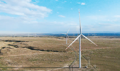 在青海省海南藏族自治州共和縣拍攝的風(fēng)力發(fā)電機(jī)